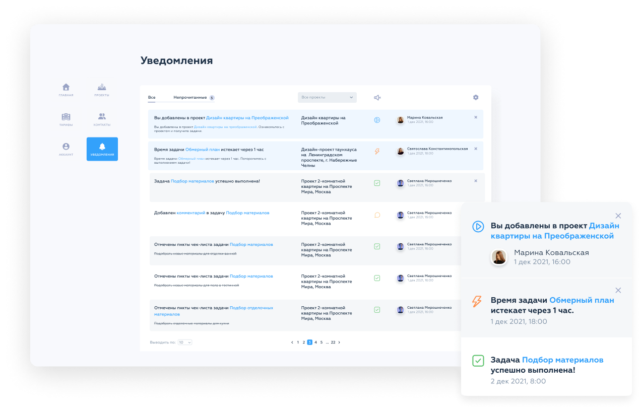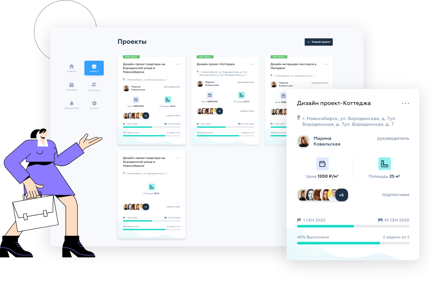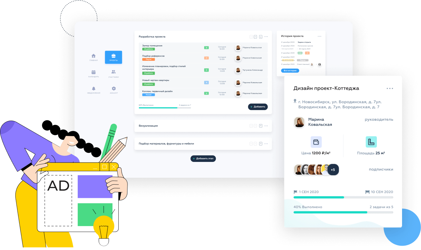 Работайте со своей командой, распреляйте загрузку сотрудников, расставляйте приоритеты. Ведите внутренние проекты компании так же, как и дизайн-проекты.