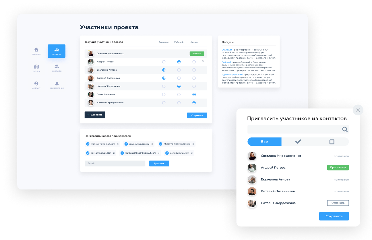 Участвуйте во всех проектах в едином пространстве. Участие в проектах других пользователей абсолютно бесплатно и никак не тарифицируется.