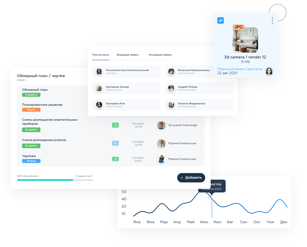 ПрисоединитьсяTeroom – это таск-менеджер, разработанный специально для управления проектами дизайнеров интерьеров и архитекторов.